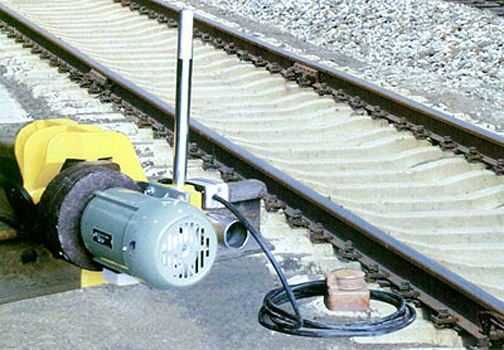 鋼軌焊接前,可用鋼軌端頭打磨機對鋼軌端頭的橫斷面進行精確打磨。該種打磨機在各個方位均有良好的平衡性,所以操作起來非常容易。馬鞍型夾軌鉗把打磨機固定在被磨削鋼軌端部的軌頭上。磨頭的移動是由一個手柄來控制的,其移動的范圍處于垂直于鋼軌的橫斷面內(nèi)。磨頭的移動與砂輪的轉(zhuǎn)動兩者組合運動,能夠確保鋼軌端頭被磨削的橫斷面獲得良好的精度、垂直度和光潔度。